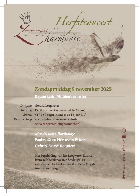 Concertinformatie: Herfstconcert 9 november 2025 (matinee) Requiem van Fauré en Psalm 42 van Mendelssohn